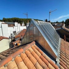 Nous effectuons tous les travaux d'évacuations de zinguerie, les gouttières, l'entourage de cheminée et de velux.