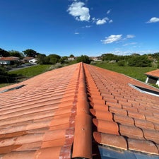 Réfection complète de la toiture, renfort de la charpente, pose d'un pare pluie, remplacement des tuiles, bandeaux de rive et du velux avec abergement sur mesure.